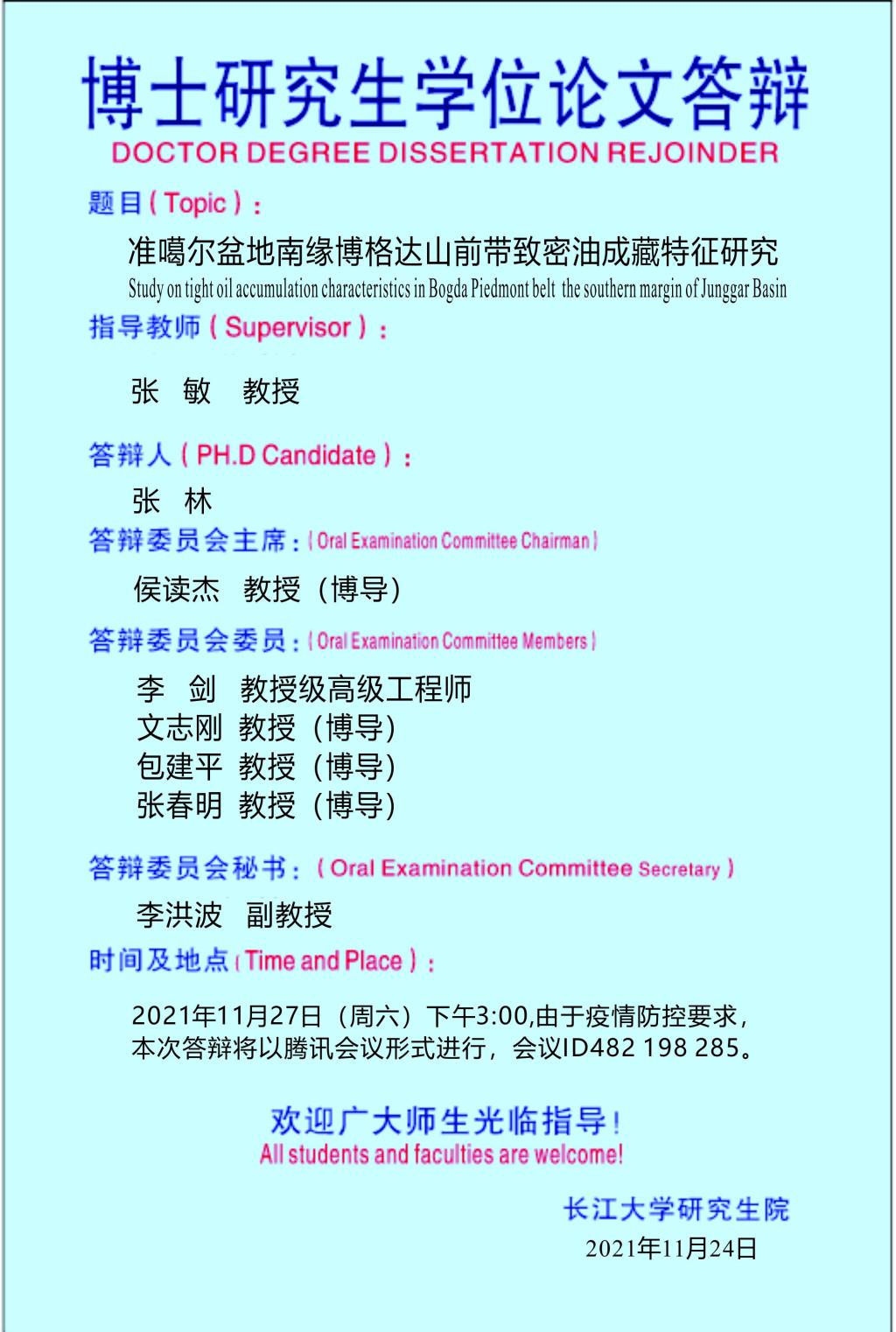 2021年12月博士研究生毕业答辩公告