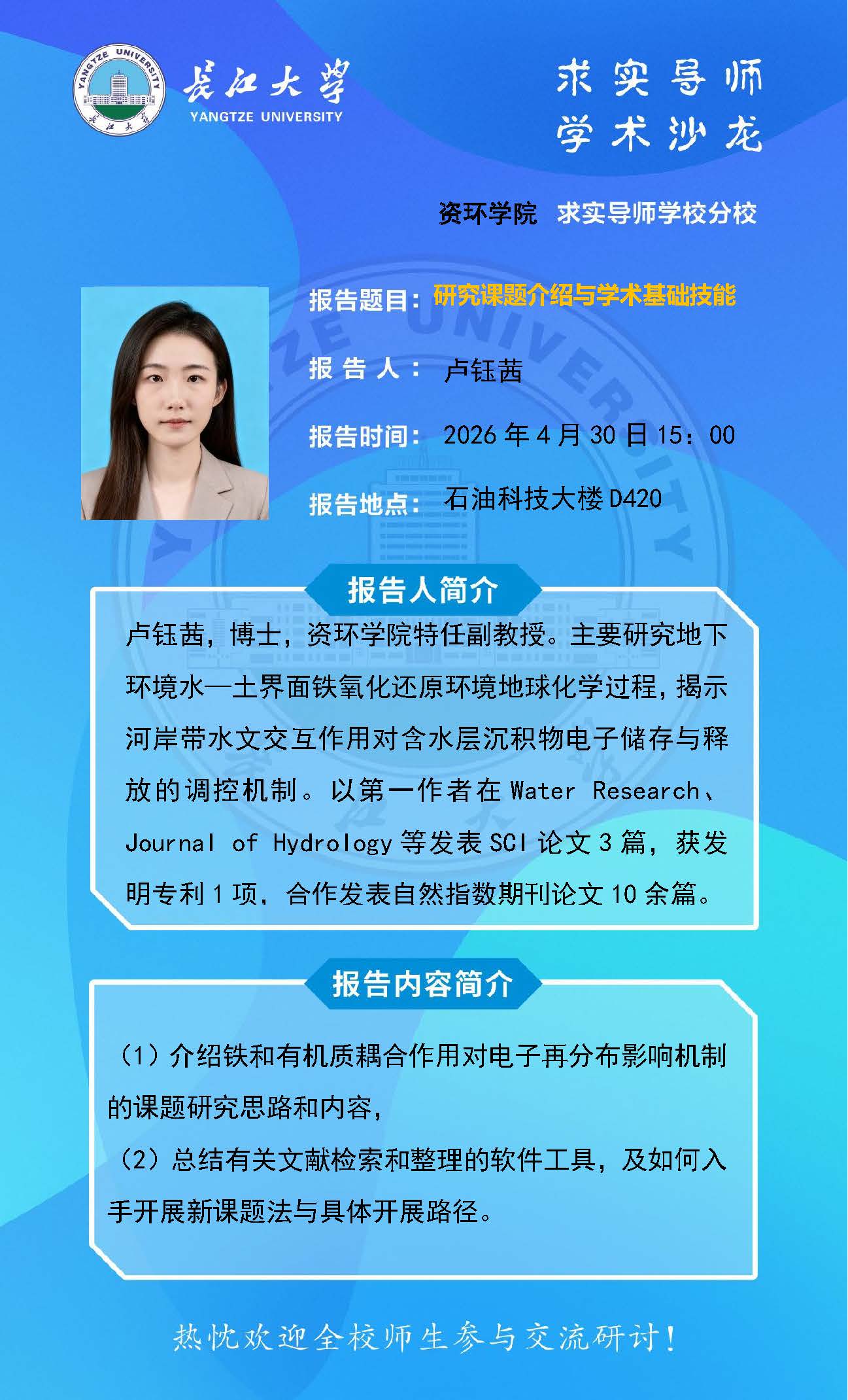 上一篇:2025-2026学年“求实导师学术沙龙”讲座信息(赵红静、蒋兴超、李洪波、肖七林)