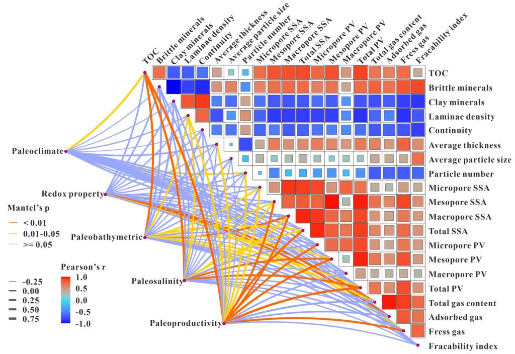 研究团队以四川盆地泸州地区龙马溪组深层页岩为研究对象,综合运用多种前沿技术(显微观察、矿物与元素分析、CO₂/N₂吸附、压汞实验、MAPS系统、等温吸附、三轴应力测试、巴西圆盘试验,突破传统单一方法的局限性。通过多尺度、多维度的实验设计,团队创新性地提出"纹层类型-储层性能关联模型",首次将纹层异质性参数(如纹层厚度、纹层密度、叠置关系)与弹性模量结合,构建了微观视角下可压裂性预测新方法,其预测精度较传统模型显著提升。