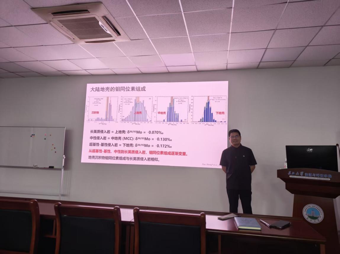 (通讯员 雷鸣)2026年4月13日,应williamhill英国郭锋教授和雷鸣特任教授的邀请,中国地质大学(北京)地球科学与资源学院黄丰教授来院做了题目为“’钼’击弧岩浆成因和陆壳组成”的学术汇报。 黄丰教授首先从钼元素的基本化学性质出发,介绍了钼在岩浆演化过程中的赋存形式和变价特征,确定了它是一个氧化还原敏感的不相容元素。通过总结已有的关于地幔和地壳来源的岩石的钼元素和同位素组成的对比,确定了亏损地幔具有异常低的钼元素含量和较轻的钼同位素组成,对大陆地壳的钼同位素组成的研究仅限于大陆上地壳,已有研究揭示了大陆地壳很可能具有重于亏损地幔的钼同位素组成。鉴于大陆地壳和亏损地幔之间钼同位素组成的极大差异,提出了两个核心科学问题:(1)硅酸盐地球(包括地幔和地壳)的钼同位素组成是如何达到平衡的?和(2)大陆中下地壳和全大陆地壳的钼同位素组成到底如何? 针对第一个科学问题,黄丰教授选择了位于青藏高原中部形成于典型大洋俯冲期间的高镁安山岩开展研究,揭示了它们具有极轻的钼同位素组成。这些高镁安山岩具有与周边同时代沉积物一致的Sr-Nd同位素组成,结合它们类似沉积物熔体交代地幔楔形成的典型高镁安山岩的微量元素特征,确定了这些极轻的钼同位素组成来自俯冲沉积物。因此,俯冲的大洋沉积物很可能交代地幔楔形成轻钼同位素储库。进一步对跨越万里的特提斯域来自岩石圈地幔的超钾质岩石的研究也揭示了它们具有轻于亏损地幔的钼同位素组成,确定了特提斯域大陆岩石圈地幔很是轻钼同位素储库,可以在一定程度上平衡大陆地壳的重钼同位素组成。 针对第二个科学问题,通过对青藏高原南部冈底斯弧剖面岩浆岩组成与大陆地壳物质的地球物理性质和化学组成对比,确定了冈底斯弧不同岩性组成的侵入岩能够代表不同深度的大陆地壳物质组成。在确定基性、中性和酸性岩石分别代表大陆下、中和上地壳的研究方案后,进一步搜集和整理全球已发表的显生宙侵入岩,系统厘定了大陆下、中和上地壳的钼同位素组成。结合大陆地壳不同的结构模式,首次给出了大陆地壳的钼同位素组成的推荐值。结合全球尺度的壳幔分异和演化模型,确定了现今的壳幔分异过程可能达到了动态平衡。 汇报结束后,参与报告的师生踊跃提问,针对钼同位素在地壳的组成和壳幔分异过程的应用上进行了深入讨论,对钼同位素的其他可能的应用方向(如矿床学研究,示踪大陆俯冲过程)开展了细致分析,为进一步了解钼同位素在地球科学研究中的应用打下了基础。(审核 郭锋 编辑 王继敏)