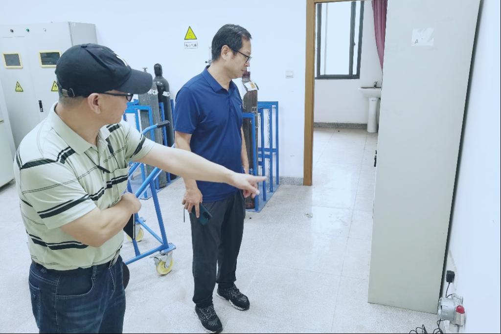 实验室安全是确保实验室环境和操作过程的安全性,以保护实验人员、设备和环境的重要措施。肖书记接着来到学院科研、教学实验室,对实验室设备使用、用电、防火防盗等方面进行了全面检查,在对前处理实验室、配电室、气瓶室等实地查看后,又通过监控调度系统进行了远程全方位的检查,确保安全检查无死角无遗漏。