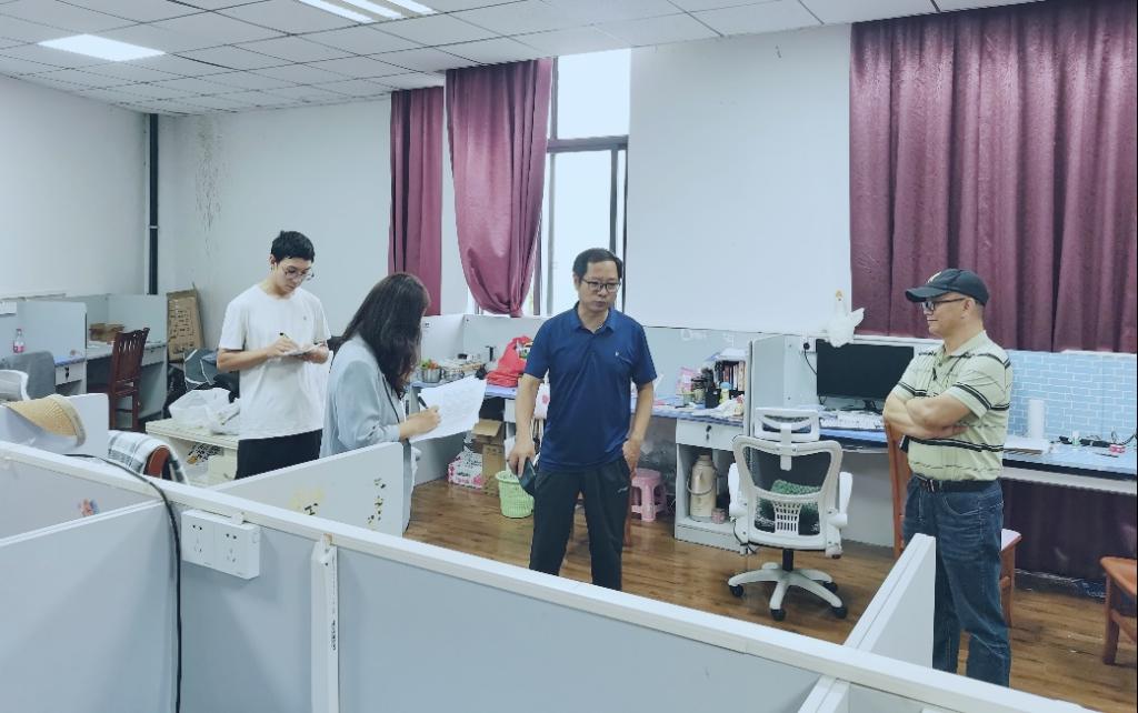 此次检查的目的在于查找问题,消除安全隐患。肖书记首先对办公场所的消防通道是否通畅、楼道及安全通道是否堆放易燃易爆等物品、安全出口和应急照明是否配备齐全、房间内是否违规使用电烧水器等大功率电器几个方面进行了详细检查,在学院研究生公共办公室,肖书记重点强调了学生用电安全、学习环境保持,要求安全人员普及安全知识,深化学生安全意识,提升学生主动识别安全隐患的能力。