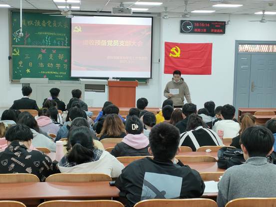 接着,入党介绍人黄鹏同志介绍闫宣允同志的现实表现和培养考察情况,并对其能否入党的表明自己的意见和态度。黄鹏老师认为,其已基本具备中共预备党员标准,同意接收为中共预备党员。