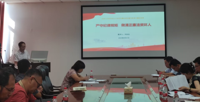 本次廉政党课以“严守纪律规矩、做清正廉洁资环人”为主题,围绕党员干部坚守党的纪律、加强党性修养、坚持自省自励三个方面内容展开。强调了坚守党的纪律的重要性,列举了违反党纪的主要表现和警示案例。要求学院党员干部要加强党性修养,切实掌握党纪重要内容,在日常工作与生活中自觉做到遵规守纪,严于律己,自省自励,筑牢违规违纪防线,做清正廉洁资环人。