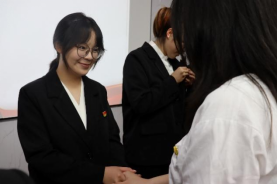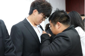 会议伊始,黄宇同志带领全体党员学习《中国共产党章程》第七章。随后,举行“新老党员对接仪式”,由毕业生党员为新发展的党员佩戴党员徽章。