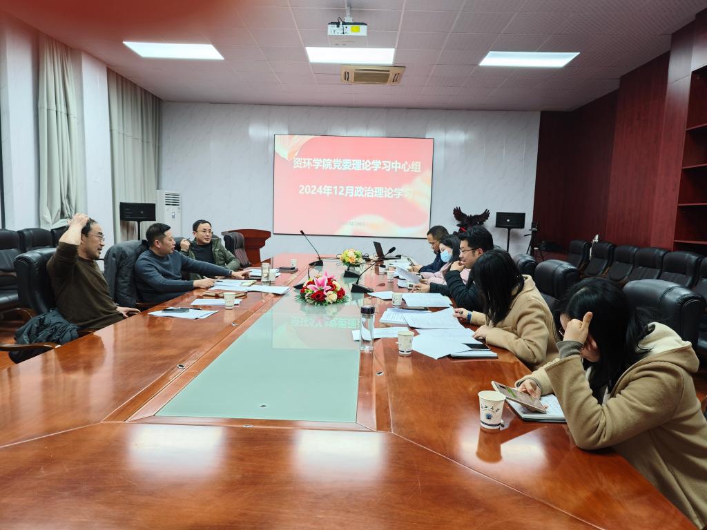 (通讯员 李春花)12月9日下午,资环学院党委理论学习中心组在石油科技大楼D101开展12月政治理论学习,全体中心组成员参与此次学习,会议由学院党委书记王宁主持。
