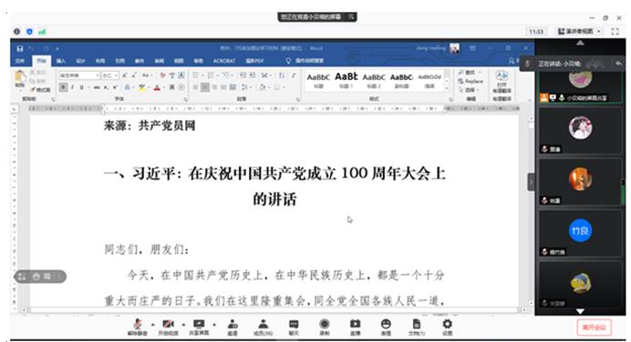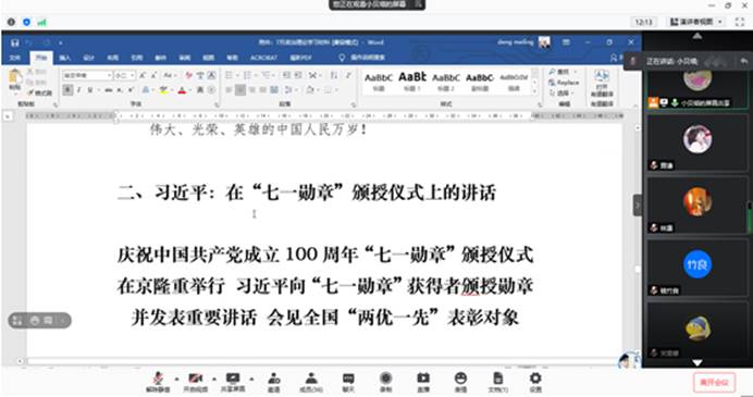 (通讯员 李慧/文 王瑞林/图) 为庆祝中国共产党成立一百周年,提升我院研究生政治理论素养,坚持推动以习近平新时代中国特色社会主义思想武装头脑,进一步增强“四个意识”,坚定“四个自信”,做到“两个维护”,2021年7月6日,我院指导督促研究生各班举办政治理论学习主题班会。