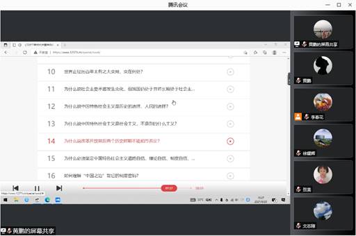 2021年6月25日下午,williamhill英国理论学习中心组在线上开展了党史学习教育读书班集中学习活动。学院中心组成员、各系主任和各党支部书记参与了本次学习。