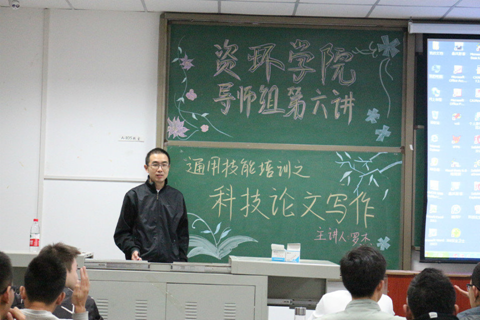 (通讯员 王琨淇/文 姜世忠/摄)为了更好地服务广大同学、开拓学生视野、提高综合素质,2017-2018年度,资环学院威廉希尔党支部推出“导师组”系列讲座。11月6日晚18:00,导师组系系列讲座第六讲在武培A104正式召开。讲座以“科技论文写作”为主题,邀请资环学院环境生态工程系主任罗杰老师主讲,资环学院威廉希尔党支部书记刘娥老师主持,50多名大二、大三本科生参与讲座。