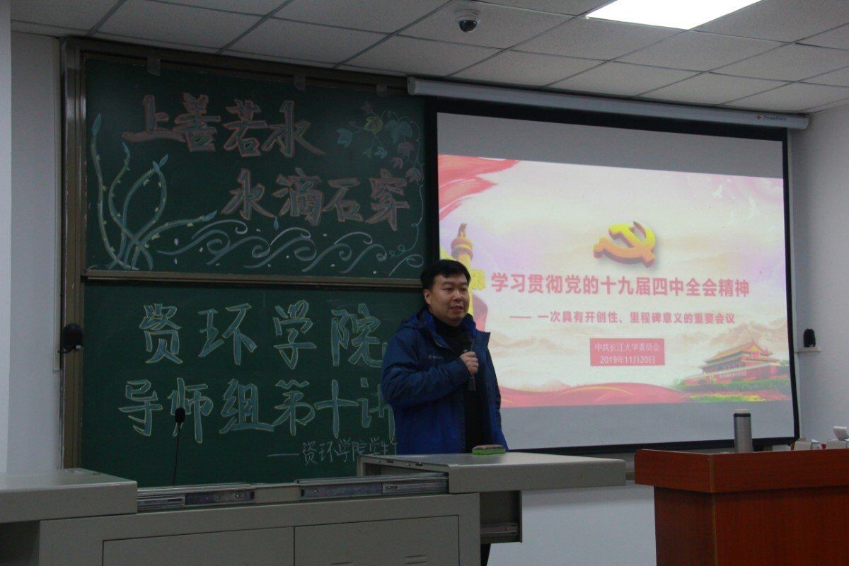 (通讯员 皮文 图/文) 124日,1900,资环学院党委书记张科同志于教学楼B104为全体19级新生开展了一场以“上善若水,水滴石穿”为主题的党课培训,会议由史心宇同志主持。