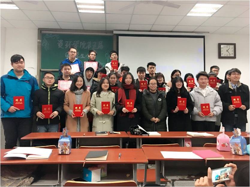 总结过后,由莫晓靥老师为每位学生会成员一一颁发了聘书,并寄语道:“学生会的每一位成员都应该是榜样,是力量,是我们资环的形象。希望以后的学干生涯,你们可以走的更好,更远!不忘初心。”