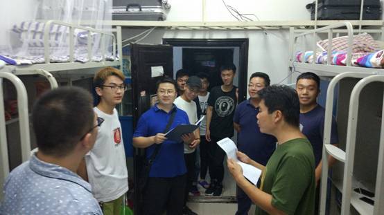 通讯员(陈坤/文 李彰鹏/图)为使2017级新生更快、更好地适应新环境,了解新生入学过程中的各种问题,9月6日晚,资环学院地球化学系主任蒋兴超、副主任吴越、各班主任及班导等,到男寝八栋所有地化系新生宿舍进行了走访慰问。