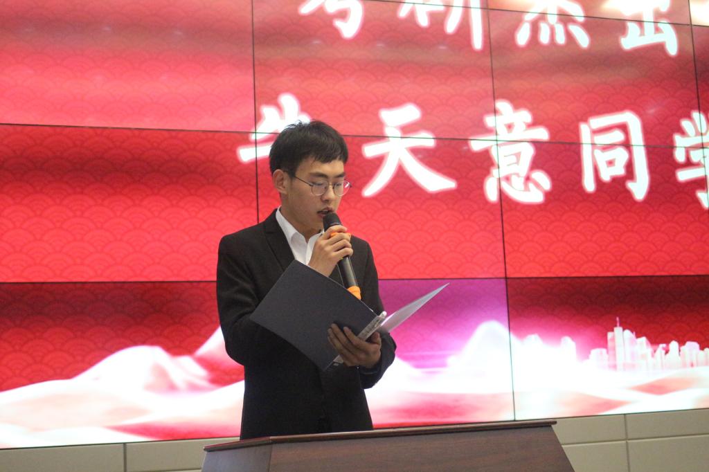 大会第四项,考研杰出代表——牛天意同学发言。牛天意向同学们述说了他的故事,从进入英国威廉集团的那一刻开始,他就立志为提升自己而战,不论是日常学习还是考研生活,他都能够全身心地投入,不被外物所干扰,坚定自己的信念。他呼吁同学们能够不忘初心,为自己的梦想而奋斗。
