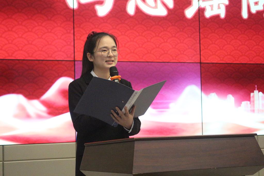 大会第五项,2018级考研代表——冯思瑶同学发言。冯思瑶首先表示了对陪她一路走来的学长学姐的感谢,正是她最初的先闯闯看的想法以及老师与同学的肯定,激励着她一直往前走,坚定自己的选择,决定自己的考研目标,是她对未来的信念。