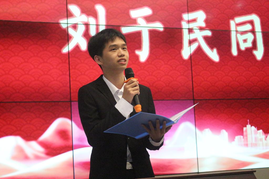接着是考研杰出代表——刘于民同学发言。刘于民给同学们分享的,是他的关于选择的故事。在考研之前,他就已经获得了中石油公司的一份工作,于此同时,他也成功的考上了英国威廉集团的研究生,在工作与学业之间,他忠于长大,选择了继续提高自己,为母校增光添彩。
