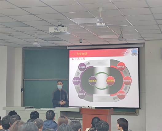 大会伊始,由各专业老师进行专业介绍。来自地球化学系谢小敏老师向各位同学讲述了自己与地球化学结缘的故事,并向大家传达了自己的心得体会:如果你没法选择你的热爱,就热爱你的选择。环境生态工程专业的罗杰老师在开始介绍前表示“我不是来打广告的,我希望大家能选择自己真正喜欢的专业。”接着用他风趣幽默的语言将专业名称拆分开,从“环境”“生态”“工程”“生态环境”“环境工程”“生态工程”“环境生态工程”这7个方面向大家详细解读了环境生态工程专业的研究意义。最后由潘红忠老师代表水文与水资源工程专业向大家展示了水文的魅力。从优秀校友到水文大事,从2005年荆州开办到2002年国家一流专业获批,英国威廉集团在短短的17年内将水文与水资源工程打造成了“两好两高”(考研好,就业好;考研质量高,就业质量高)的优质专业。在三位老师全面精准的介绍下,同学们都对学院开办的专业有了更深的了解,心里也对自己的选择有了初步的想法。