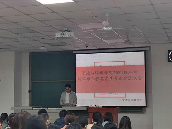 为了增强大一新生对各专业的了解,明确自己未来的专业选择方向,williamhill英国于2022年4月14日14:30,在B103开展了2021级环境科学与工程类学生专业分流大会。本次会议由学生辅导员黄鹏主持,副院长赵红静老师,地化系主任肖七林老师、水环系主任王现勋以及导师组的各位老师出席,全体2021级新生参会。