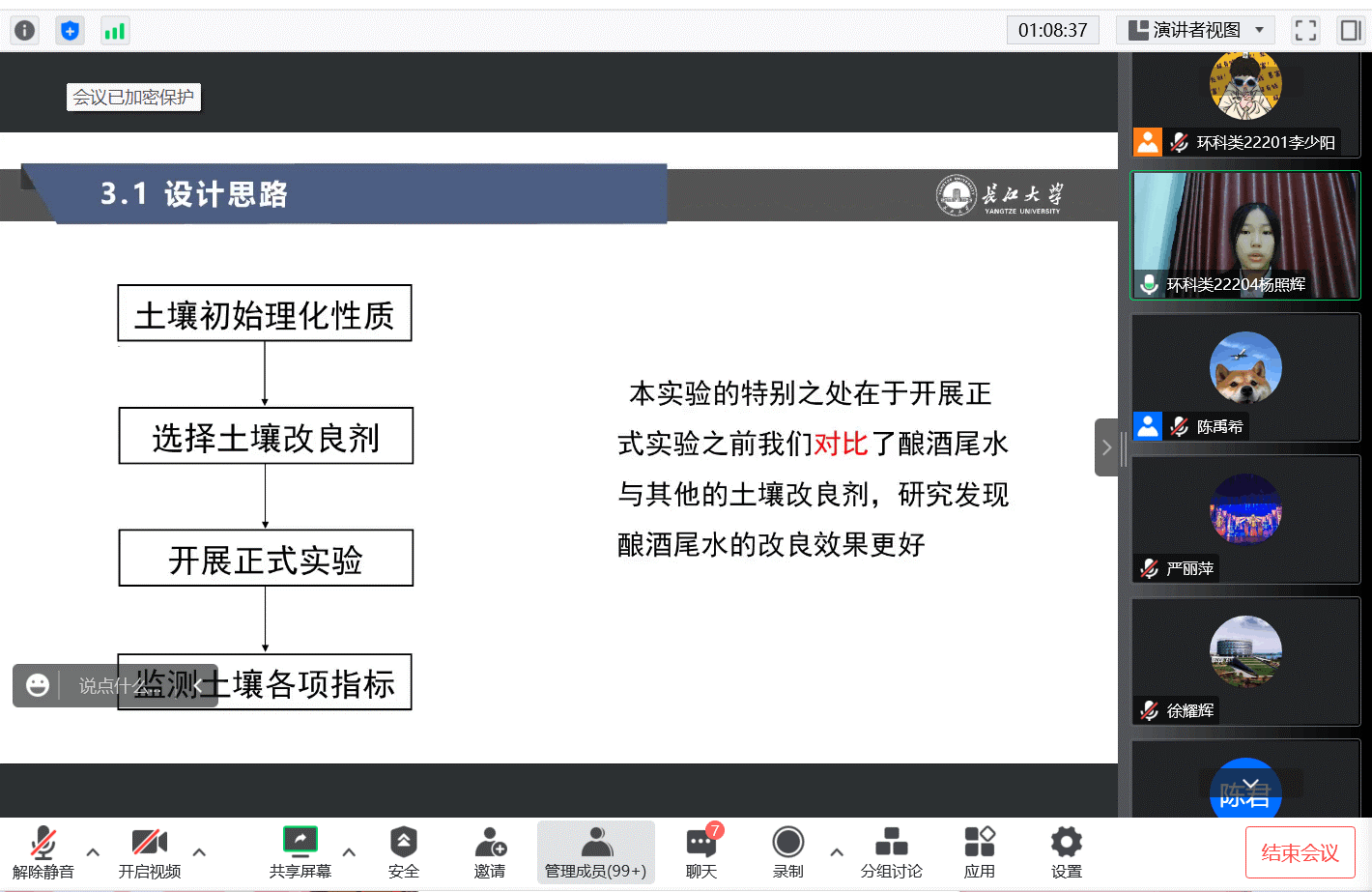 参赛小组的成果包含了自然科学类论文、科技发明制作两大类,紧紧结合同学们所学知识,从水文、环境、地球化学三个层面进行科研与创新,且都颇有成就,展现了当代大学生极高的科研热情和科研素养。张雅璇小组的“鄂尔多斯石炭系煤岩储层微观精细表征研究”让人眼前一亮。张灿灿小组的“酿酒尾水对盐碱土改良效果研究”也让大家十分感兴趣。与此同时,其他小组的答辩也让同学们收获颇多。本次大赛无疑激发了我院同学们极高的创业热情。