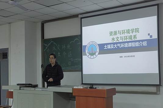 会议之初,王老师从专业设置,国家发展,师资力量等方面为同学们进行介绍水环系基本情况,让同学们对水环系的学习,发展,优势等有一个明确具体的认知。最后以“和谐师生,幸福资环”作结,衷心期盼欢迎同学们的到来。