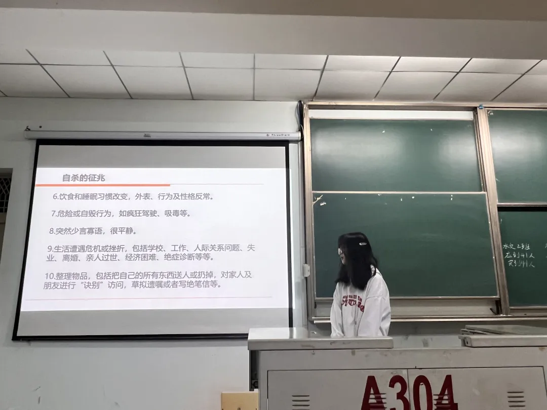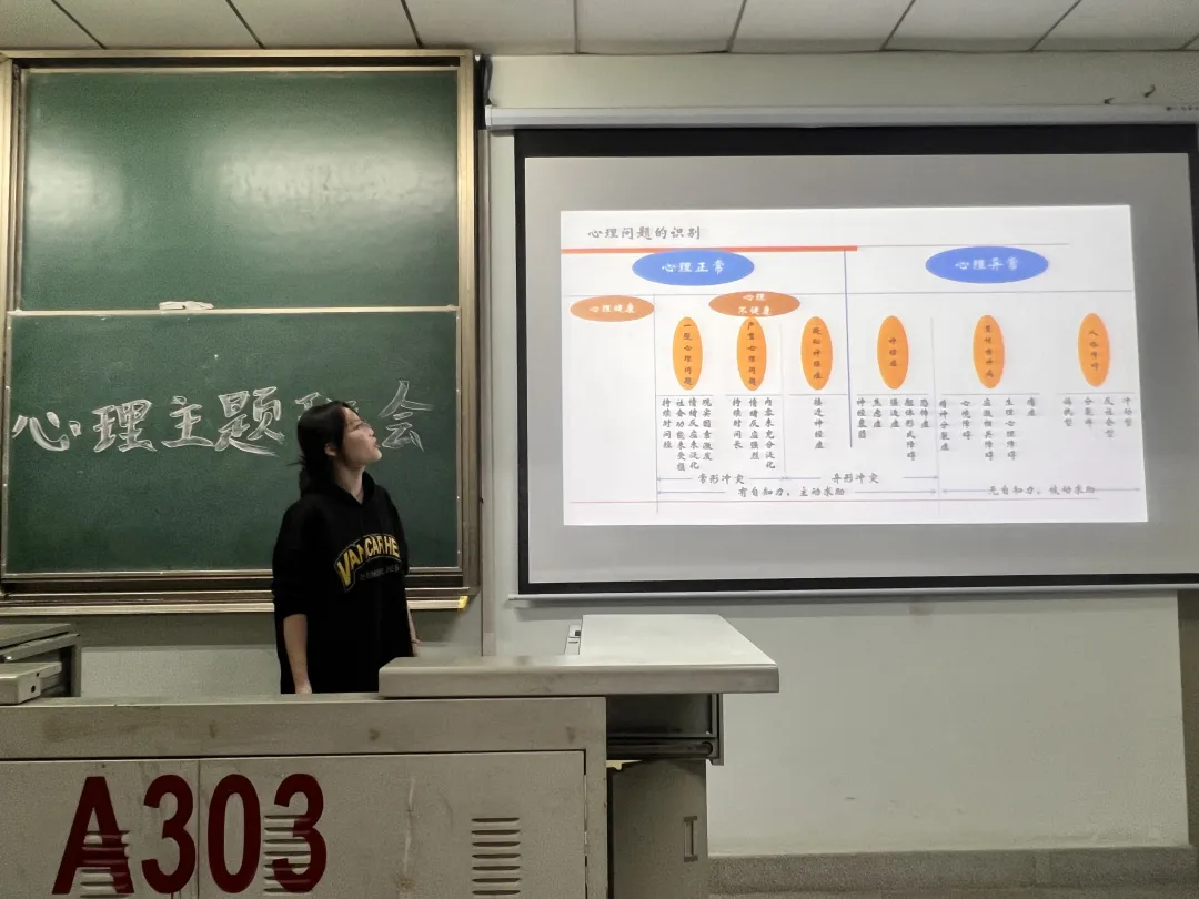 为进一步加强学生心理健康教育,提升学生心理素质,帮助新生更好地适应大学生活,我院于10月11日晚上七点在各班自习室成功举办了以“自助与互助”为主题的心理班会。 在会前,辅导员陈静老师提前将各班心理委员召集在一起进行了演讲培训,旨在更好的发挥班会作用,为同学们的心理健康保驾护航。 班级心理委员首先介绍了“高关怀学生的特征”,强调了在日常学习生活中如何识别出心理出现问题的学生,并给予其适当的关怀和支持,共同营造一个温暖和谐的班级氛围。 同学们认真倾听,并积极发出提问,尤其在心理危机识别与干预的环节,同学们了解了识别心理危机的基本方法,并学会如何在心理危机到来时能够迅速且有效地寻求帮助。 此次班会还重点介绍了我校四级心理危机干预体系。从专职心理咨询师到心理专干,从年级辅导员到班级辅导员,同学们对我校心理健康教育资源有了更加全面的了解。辅导员还鼓励同学们积极参与心理健康教育和活动,不断提升自身的心理素质和调适能力。 通过自助与互助的学习和实践,让同学们以更加开放的心态,共同关注和促进心理健康,让每一位同学都能在大学期间收获成长与快乐。(审核:郭政)