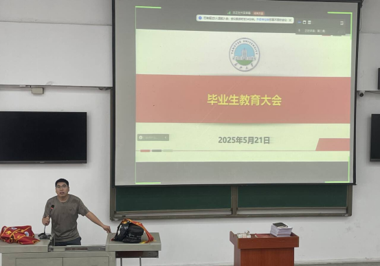 (通讯员 黄鹏)为切实做好毕业生离校教育工作,确保2025届毕业生安全、文明、有序离校,5月21日,我院组织召开了2025届毕业生离校教育大会。会议由学院辅导员李春花老师和黄鹏老师主讲,全体2025届毕业生参会。