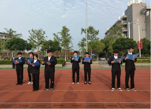 在齐唱国歌后,学生代表魏嘉豪、刘锦华等同学以《我的祖国》为题进行朗诵。他们用朴实而热情的语言歌颂祖国的朝气蓬勃和繁荣昌盛,表达了学子在祖国怀抱下勇于奔向星辰大海,为实现强国之梦只顾风雨兼程的心声。