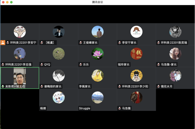 会议伊始,老师与家长共同观看心理微课,学习“怎么样帮孩子处理好寝室关系”、“孩子得了抑郁症怎么办”等主题课程,然后各位班主任以“心理健康,家校联合”为主题展开交流。会议中老师与家长们讲解大学生常见的心理问题,分享自己作为老师对处理该问题的看法,期待家长日后能够和学校辅导员、班主任展开积极交流。参会家长于会议中也积极配合,与老师实时互动,讨论如何正确和孩子交流,关心孩子在校实时情况。