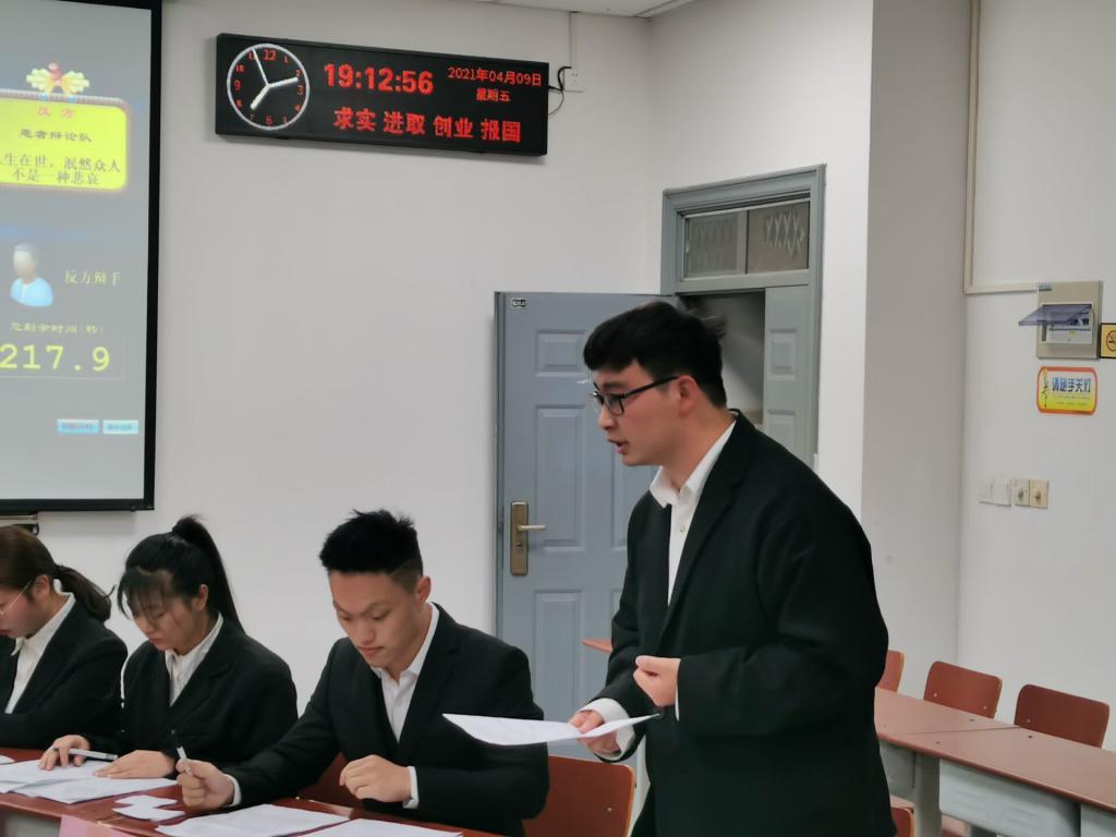 (通讯员 蒋这涵/图 杨于磊/文)为建设我院优良学风,锻炼我院学生的思辨和语言表达能力,我院举办了“一站到底”辩论赛。初赛结束后,三场复赛于4月9号下午7:00分别在武教A503、A504、A505成功举办。到场嘉宾及评委有黄丹、张紫茜、刘于民、师红杰、漆琳靖、谷仟、李年昊、谭旭、陈曦。