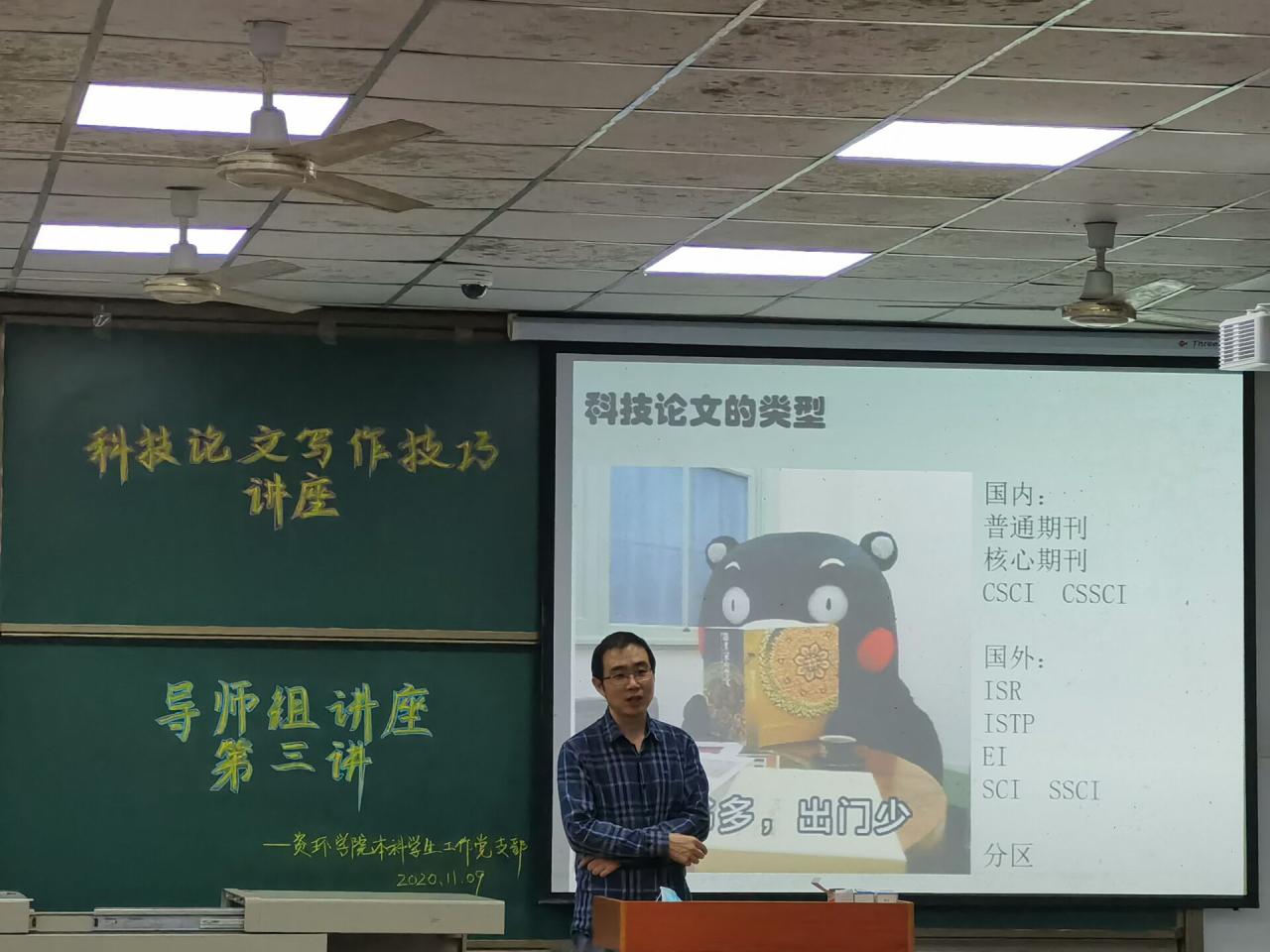 随后,罗老师为大家介绍了什么是科技论文,以及科技论文的类型。在谈及科技论文的架构时,他重点强调科技论文一定要精标题,细内容,多总结,多反思。对于正文部分数据的处理,他为同学们提供了自我测量、询问老师、查阅文献三个途径,并呼吁同学们从实际出发,体现精益求精,以实为准的科研精神。前期充分的准备是一篇优秀科技论文的基石,正如罗杰教授所言“要站在前人的肩膀上”,多阅读多思考,以高标准来严格要求自己。
