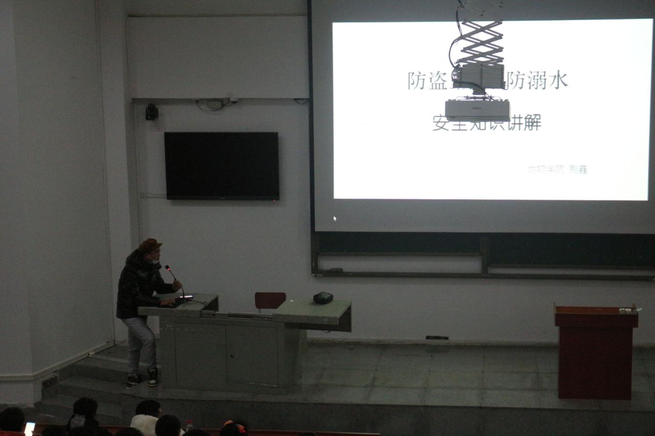(通讯员 王钰程/图 钟昊珅/文)为了普及大学生安全自救知识,加强大学生安全防范意识。资环学院在武教B102教室于2020年11月25日晚七点开展了以“普及大学生安全自救知识,加强大学生安全防范意识”为主题的安全大讲堂。本次讲座由荆鑫老师,郭琳老师,李宛书老师担任主讲。