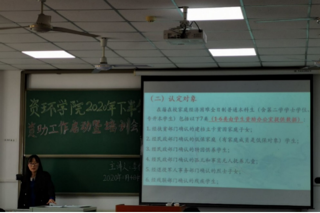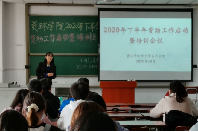 (通讯员 蒋康/图 武文祺/文)秋风飒爽,在这丹桂飘香的季节。2020年11月4日12时许,武教A-301开展了资环学院2020年下半年资助工作启动暨培训会议。本次会议由学院学生事务办公室主任李春花老师主讲。党委副书记范梅英莅临本次会议,资环学院的班长以及团支书到场本次会议。