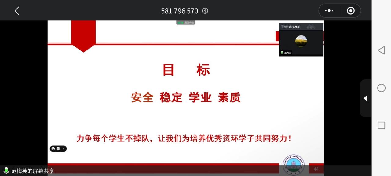 最后,范书记就学院学风建设提出了自己的展望。在英语交流日益广泛的现在,英语成为同学们走进社会不可或缺的本领。范书记心系学子未来,鼓励19级和20级的班主任们更加重视同学们的英语四级学习,让资环学子在激烈的社会竞争中不会掉队。与此同时,范书记也努力将资环学子发展有能力,有温度的人。通过学院的各项活动,锻炼同学们的口才表达,演讲能力,在温馨和谐的氛围中养成同学们爱校园,爱学院的良好习惯 。