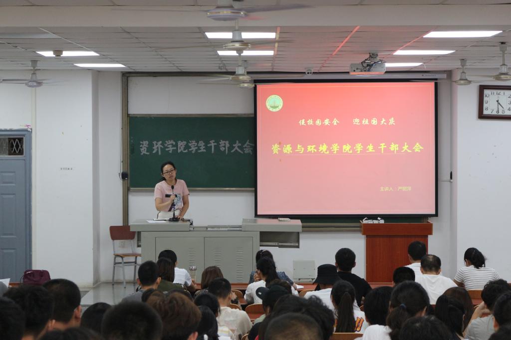 (通讯员 蔡依玲 图/文)针对919日上午突发的学生安全事件,资环学院于当日下午420分在武教B105紧急召开学生干部大会。本次大会由资环学院团委书记严丽萍主持,各班班长、团支书、安全委员、寝室长以及学生会全体成员参加。