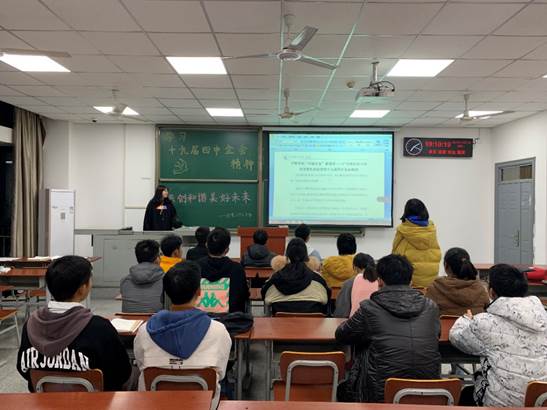 在“十九届四中全会精神”主题学习班会开展的过程当中,有的班级采用了随机分小组讨论的方式,就会议精神进行了激烈的讨论,随后推选出学生代表就会议内容及思想精神进行发言。有的班级则是精心制作了与会议内容有关的PPT来更完整而清晰地向同学们讲解十九届四中全会的精神。