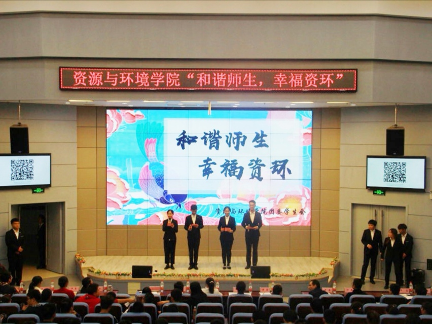 历经一年的班级考核,两学期平均考核分前八名的八个班级进入决赛。班级代表按照抽签顺序依次上台进行五分钟的班级风采展现答辩,由资环学院学生事务办公室全体老师以及学院各班班主任组成的现场评委团打分。班级的答辩主要包括班级介绍、所获荣誉、未来期盼等方面。