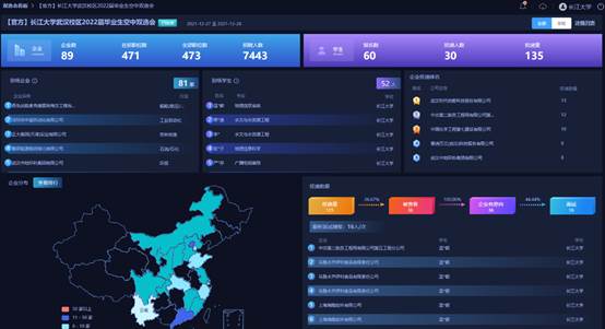 参加本次双选会的企业共有89家,共发布职位数量473个,招聘人数7443人。参加本次双选会的学生共有60人,参与投递人数30人,简历投递量135份。我院学生积极踊跃地参加了此次线上双选招聘会,报名人数占总人数的24.32%,报名人数位居各学院第二。