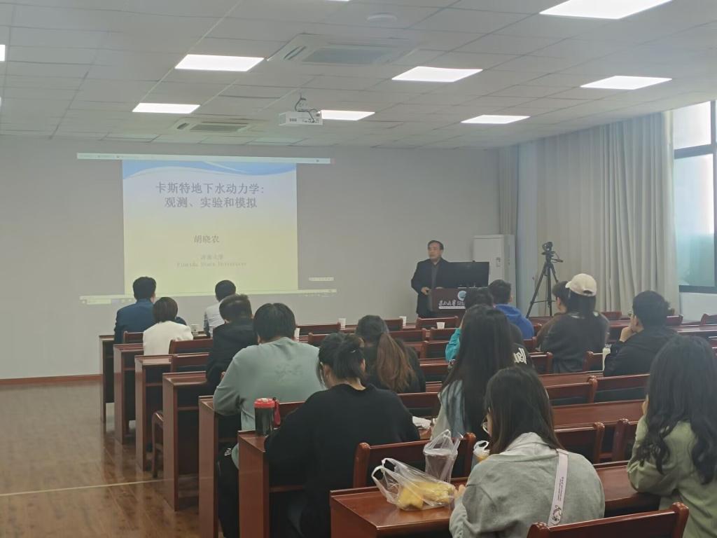 胡晓农教授从喀斯特地貌特征切入,深入剖析了喀斯特地下水动力学相关的观察、实验与模拟要点。胡教授着重强调了在水文地质研究中,实地观测获取第一手数据的关键作用,还展示了其团队在喀斯特地区长期开展的地下水位监测、泉流量动态等方面的水文地质调查工作。胡晓农教授科研团队针对喀斯特地下水动力学特性,开展了涵盖不同尺度和条件下的室内模拟实验和野外原位实验研究,推动喀斯特地下水动力学的发展。在喀斯特地下水数值模拟内容中,胡教授阐述了如何运用数学模型和计算机模拟技术,开展地下水流系统模拟研究。