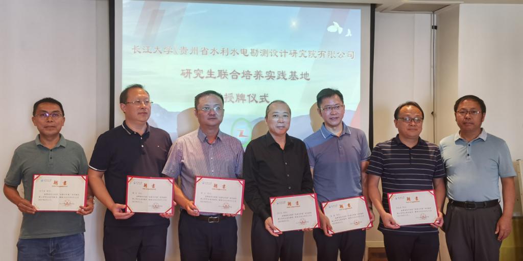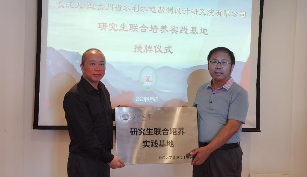 在贵州省水利水电勘测设计研究院有限公司交流中,该公司的副总经理罗天文、人资部部长张春乾、规划院副院长罗志文、生态环境工程院院长等相关领导参加了会议。那金主任重点介绍了我院办学特色和科研成果以及水环系科研团队的部分关键技术。罗天文副总经理对文志刚教授一行表示欢迎,并分别从公司情况、人才培养、招聘需求方面进行了介绍。双方围绕科研项目合作、研究生联合培养、实践基地共建等进行了深入详细地交流。会议期间,完成了研究生联合培养实践基地授牌仪式和颁发了硕士研究生兼职导师聘书。