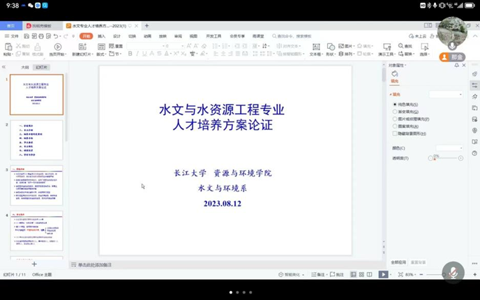 那金主任表示后续将根据校友咨询意见认真完善培养方案的修订,以此为契机进一步做好水文与水资源工程国家级一流本科专业建设、工程教育专业认证和新一轮本科教育教学审核评估工作。王现勋副院长代表学院对与会校友表示由衷感谢,并向校友们发出了诚挚邀请,期待在秋高气爽、桂花飘香的中秋时节能齐聚长大武汉校区,共话校友情,同筑资环梦。