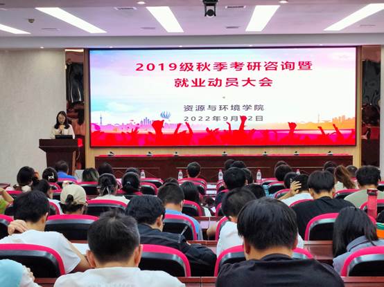 教师代表聂虎老师以身边的故事,把考研的意义讲得十分通透,接地气。同时也结合当前考研及就业形势进行分析,告诫同学们努力备考,抓住机会,不断为自己的梦想奋斗,鼓励同学们积极报考资环学院研究生。