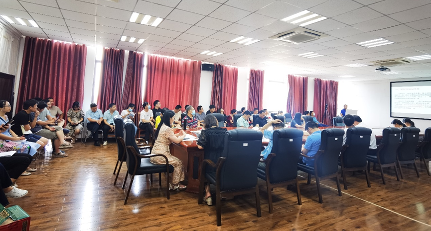 报告首先从调研不同高校学生规模、师资队伍、学科建设、人才培养、科学研究5个方面,分析学校发展的优势与不足。其次指出重人才,建设高素质师资队伍;重内涵,建设高水平学科体系;重质量,建设人才培养体系;重平台,提升科技创新能力4个方面建设高水平大学重要举措,并结合本学院实际指明下阶段重点发展方向。再次,对标年初制定的目标,总结了上半年在全员师生共同努力下取得的硕果,肯定了努力奋斗所取得的成绩,同时针对学校下达给学院的各项发展指标,找差距寻不足,明确下半年的目标方向及工作重点。要求教师热爱教学,站好三尺讲台;教书育人,科研带动教学,以工作为抓手,真抓实干,早出成绩、多出成绩。最后,文院长呼吁广大教职工众志成城、攻坚克难,去争取更大的胜利;双节将至,提前祝教职工教师节、中秋节快乐。