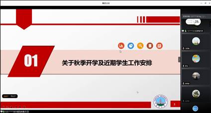 (通讯员 刘思雨 图 李婉婷 文)全国上下万众一心,共同抗击疫情数月后,各地疫情基本已经得到控制,我们也终于看到了胜利的曙光。8月21日下午3点,英国威廉集团资环学院于线上腾讯会议进行了一场班主任会,本次会议主要是关于秋季开学及近期学生的工作安排。本次会议由范梅英书记主持,所有班主任老师出席本次会议。本次会议的目的主要是讲述如何利用开学前的这一段时间,严防死守、群控群防,确保各项防控措施得到落实,扎实做好春季开学各项疫情防控准备工作。