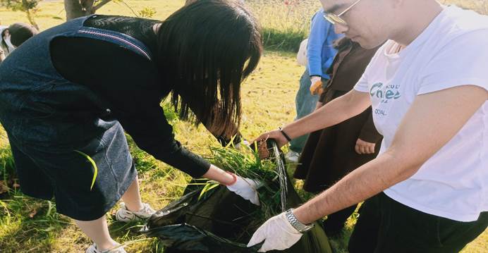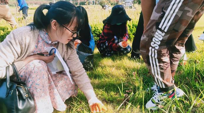 在张书记发言完毕后,全体党员及入党积极分子前往任务地点,分发垃圾袋及手套后,开展了校园美化行动。