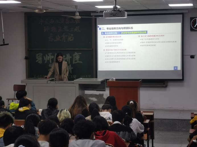 接着,贺老师讲到了本校在人才培养方面所能提供的条件。首先,在人才培养条件上,学校将为学生提供实践基地、校级科研平台和省部级科研平台,来保障学生的科研实践条件和实践能力的培养。其次,学校也有很多强有力的老师可以为学生们提供知识、科研等方面的辅导。在最后贺老师提到,学历决定起点,在未来的就业方向上,有行政事业单位、水利电力设计院、地矿部门、勘察施工单位和环评公司等,只有不断提高自身的学历,才能拥有足够的能力,成为进入这些公司的“敲门砖”。她希望同学们能对两个专业有更好的了解,从而选择到自身真正感兴趣的行业,从而为自己未来的发展打下一个坚实的基础。