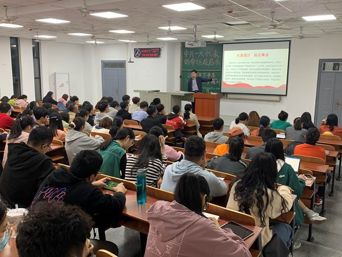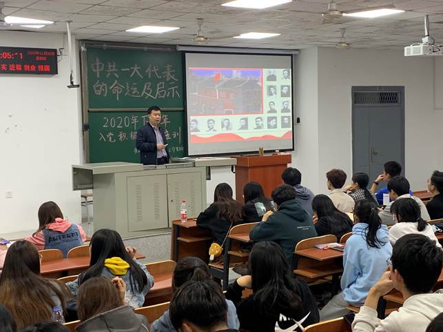 (通讯员 何玉凤)为了增强同学们对党史的认识,提升同学们的思想意识,2020年11月5日晚7时整,资环学院本科威廉希尔党支部于B104开展了2020年下半年主题为“中共一大代表的命运及启示”的入党积极分子培训讲座,本次讲座由资环学院党委书记张科老师主讲,资环学院全体入党积极分子、资环学院研究生威廉希尔党支部以及资环学院本科威廉希尔党支部全体成员准时到场,资环学院党委副书记范梅英老师出席本次讲座。