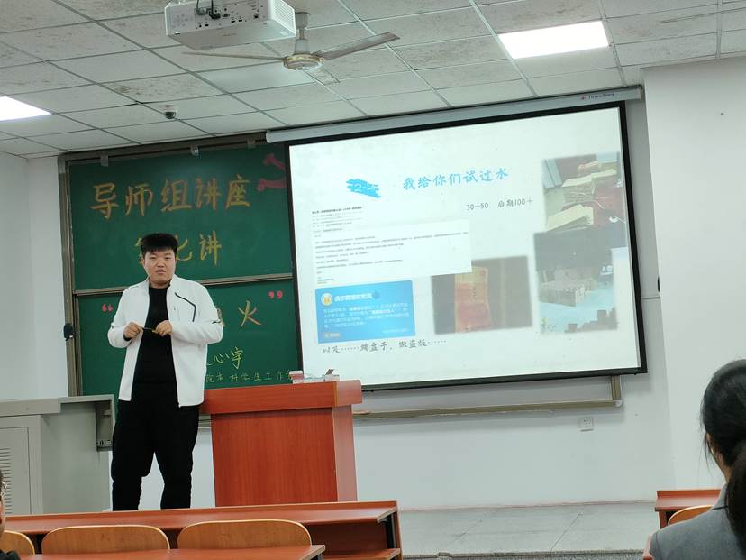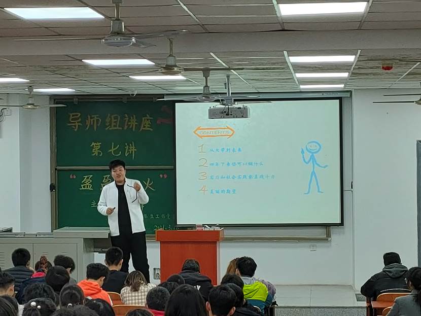 讲完未来的规划后,史心宇学长又将讲座内容的落脚点放在了目前的大学生活中。有的同学渴望实现经济自由,但是无论是通过体力换取报酬,还是利用自身的技术获取收益,都应该建立在不影响学业的基础上进行。同时,史心宇学长鼓励同学们积极报名学校的组织,不要做“孤寡老人”,还科普了资环学院的一些优秀组织,同时也介绍了入党的基本流程,表达了对同学们的期望。