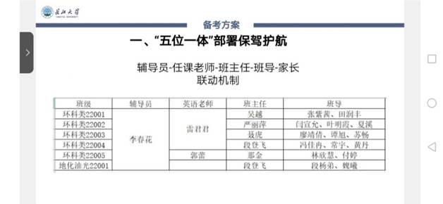 关于资环学院英语四级备考工作方案,李春花老师确定了2020级各班的目标四级通过率,并安排了“五位一体”部署联动机制,制定了一系列的奖惩机制。