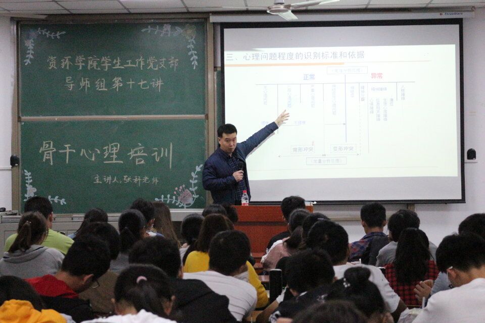 (通讯员 孙琳 图/史心宇孙琳 文)为进一步提高大学生心理素质,促进大学生的身心健康和谐,宣传普及心理健康知识,深入开展心里健康教育,贯彻落实大学生心理健康问题的发现与预防,williamhill英国特于10月31日晚7点,在武教B-202进行心理骨干培训工作,由资环学院党委副书记张科老师主讲,18级全体班委,寝室长参与讲座。