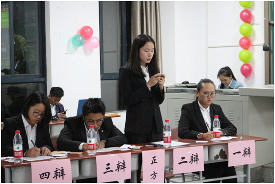 选手们在赛前的充足准备,将他们锻炼得睿智而冷静。一辩有条不紊,二辩脉络清晰,三辩头脑灵活,四辩直击要害。飞扬的思维环绕在整个教室里,每个人的脑细胞都被全数唤醒。