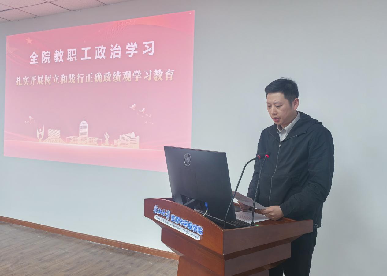 会议还开展了政治理论集中学习。党委书记王宁带领全体教职工深入学习树立和践行正确政绩观相关文件精神,传达习近平总书记对国家自然科学基金工作的重要指示、新时代高校思政课建设工作推进会精神以及《让愿担当、敢担当、善担当蔚然成风》等重要内容,引导全体教师坚守育人初心、强化使命担当,将理论学习成果转化为干事创业的实际行动。